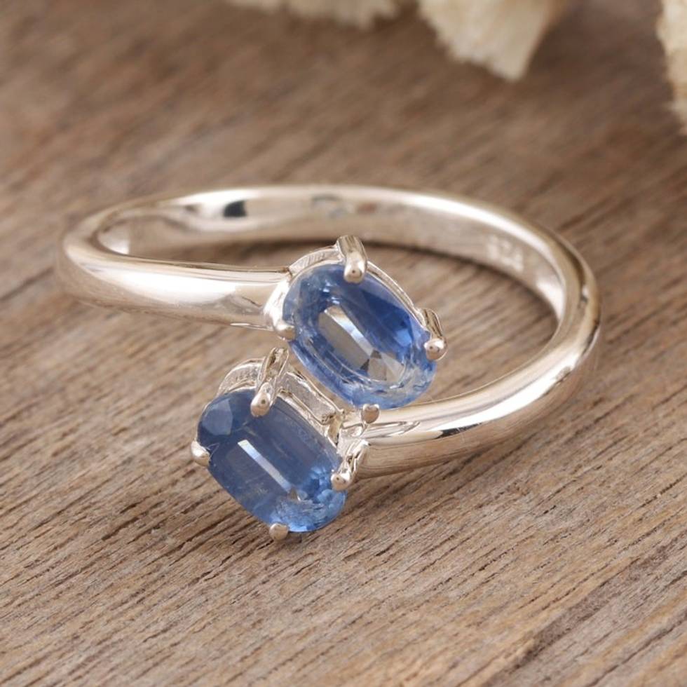 Sterling Silver Wrap Ring with Vibrant Blue Kyanite Stones 'Intense Blue Focus' Item ID: 2669924372