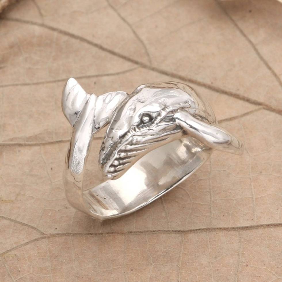 Sterling Silver Wrap Ring with Whale Motif 'Gentle Giant' Item ID: 2671748650
