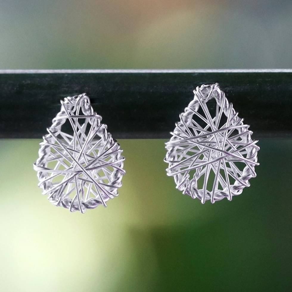 Sterling Silver Wrap Teardrop Stud Earrings from Thailand 'Teardrop Wrap' Item ID: 2669925716