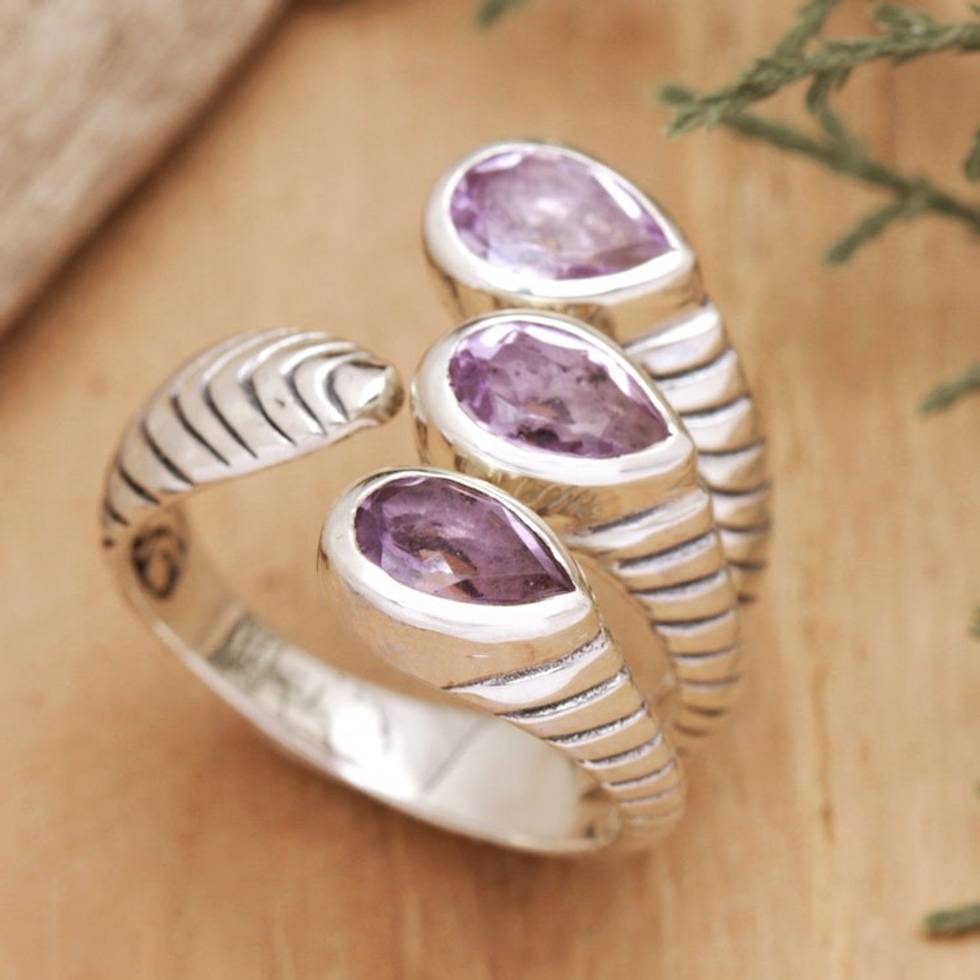 Sterling Silver Wrap Wring with Amethyst Gemstones from Bali 'Three Times Chic' Item ID: 2671763155