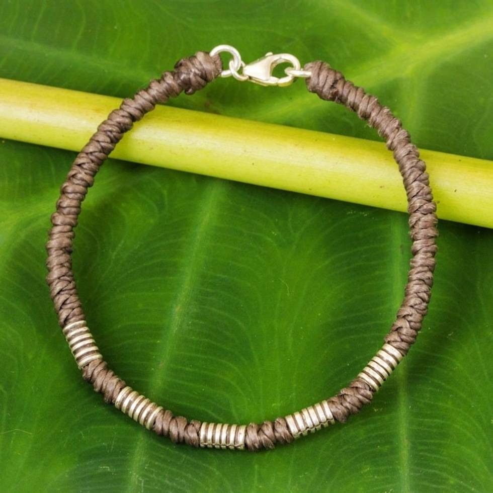 Sterling Silver Wristband Braided Bracelet from Thailand 'Beautiful Jungle in Taupe' Item ID: 2671802202
