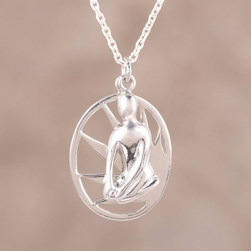 Sterling Silver Yoga-Themed Pendant Necklace from India 'Yoga Saga' Item ID: 2671791259
