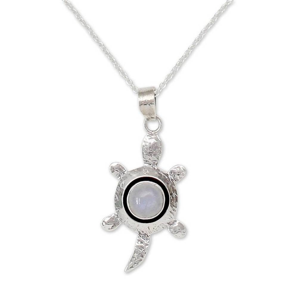 Sterling Turtle with Moonstone Necklace 'Turtle Wisdom' Item ID: 2671794967
