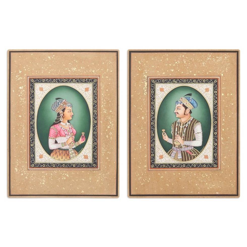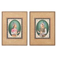 Stretched Diptych Portrait Painting Made by Natural Dyes 'Jahangir Nurjahan' Item ID: 2669889265