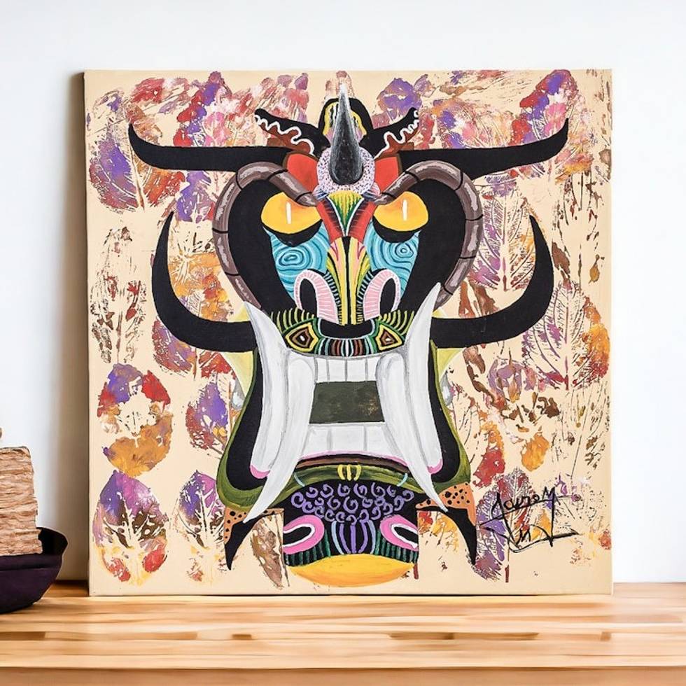 Stretched Expressionist Cultural Boruca Mask Painting 'Boruca Mask' Item ID: 2671769786