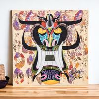 "Paying homage to the traditions and cultures of the Boruca civilization, artist Jairo Mora uses his exquisite talent to create this expressionist artwork, which portrays the magnificence of the ancient era. Colorful hues unite gracefully in this acrylic on canvas painting, depicting a classic Boruca mask worn on the traditional Costa Rican dance El Juego de los Diablitos or 'The Little Devil Games.'