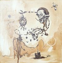 Stretched Ink and Coffee Wash Painting of Surrealist Scene 'Memory Breakage' Item ID: 2671770543