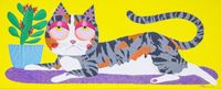 "Vibrant hues convey the playful but carefree feline nature in Surangrat's newest naif painting. Acrylic brushstrokes on canvas portray a sleepy feline, ready to take a nap after a day of mischief.