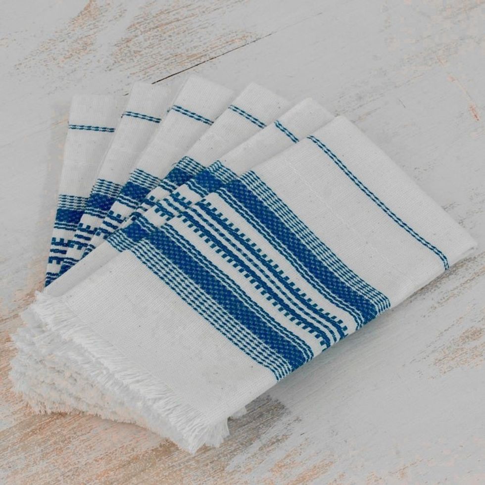 Striped 100 Cotton Napkins from Guatemala Set of 6 'Cheerful Kitchen in Blue' Item ID: 2671778816