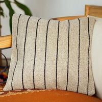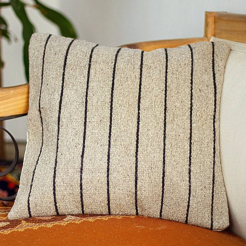Striped All Wool Black and Light Taupe Cushion Cover 'Oaxacan Stripes' Item ID: 2671808065