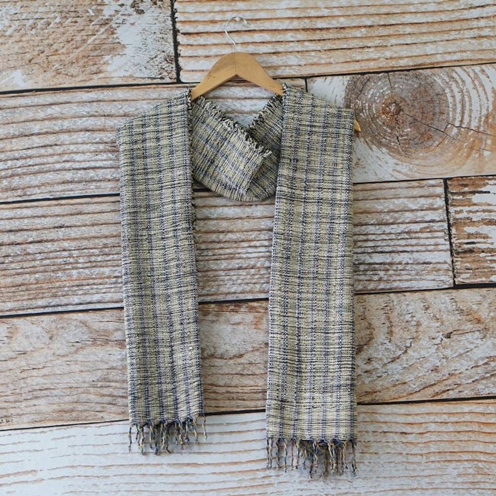 Striped and Fringed Cotton Blend Scarf Hand-Woven in Ghana 'Nyaniba V' Item ID: 2671805406