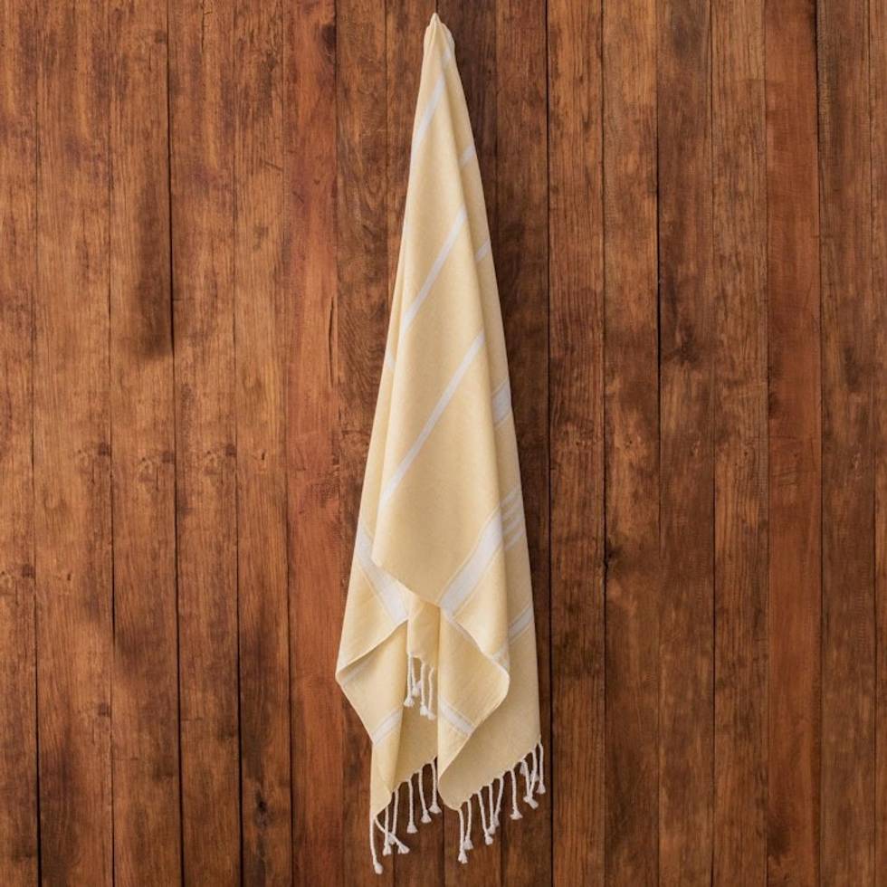 Striped Cotton Beach Towel in Buttercup from Guatemala 'Sweet Relaxation in Buttercup' Item ID: 2669933737