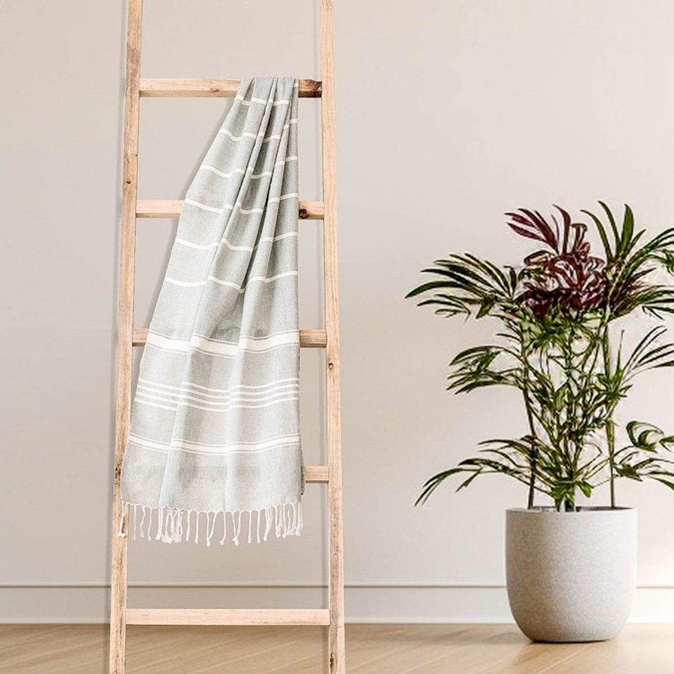 Striped Cotton Beach Towel in Celadon from Guatemala 'Fresh Relaxation in Celadon' Item ID: 2671777035