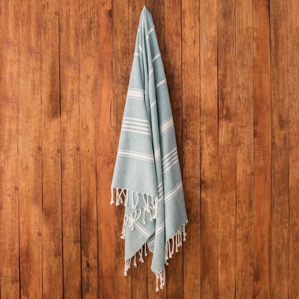 Striped Cotton Beach Towel in Teal from Guatemala 'Sweet Relaxation in Teal' Item ID: 2671776940