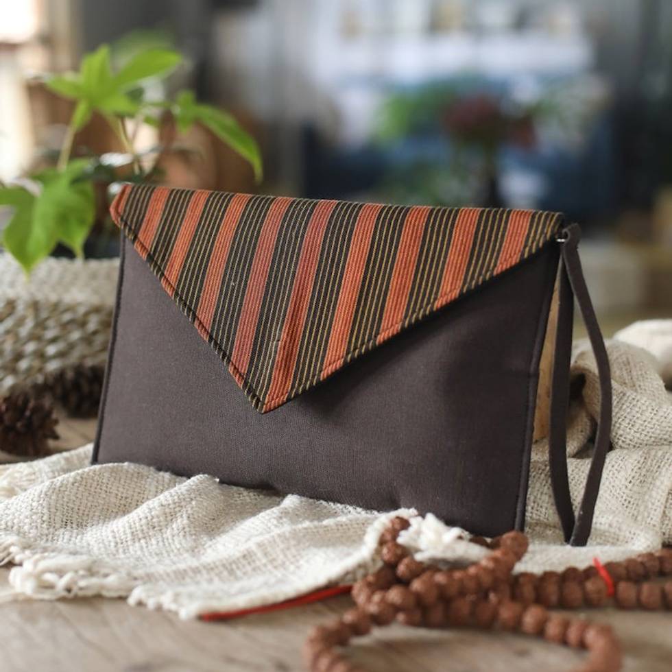 Striped Dark Brown Cotton Wristlet with Removable Strap 'Lurik Amplop Mocha' Item ID: 2671763245
