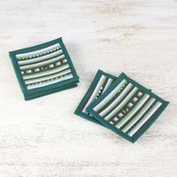 Striped Green Blue Brown Cotton Blend Coasters Set of 6 'Lively Lahu in Emerald' Item ID: 2671799042