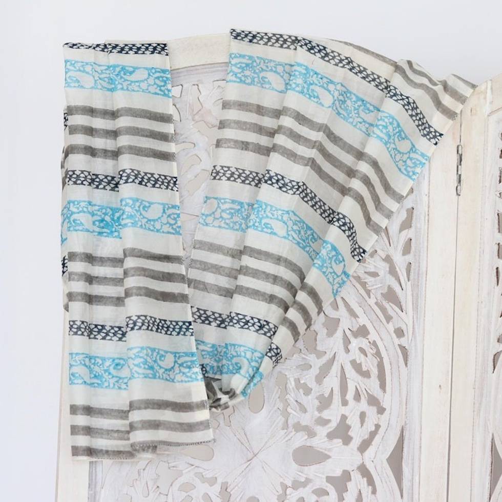 Striped Grey Cotton Chanderi Scarf from India 'Paisley Breeze' Item ID: 2669892371
