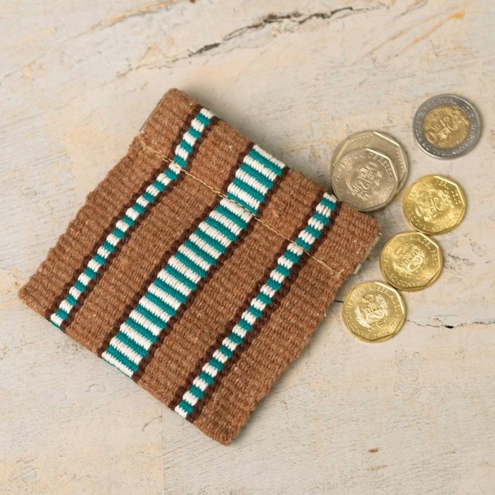 Striped Handwoven Cotton Coin Pouch with Snap Top Closure 'Raining on The Desert' Item ID: 2671698091
