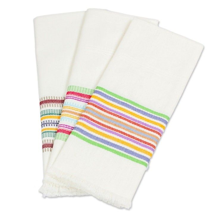 Striped Multicolor 100 Cotton Dishtowels Set of 3 'Celebration' Item ID: 2671778263