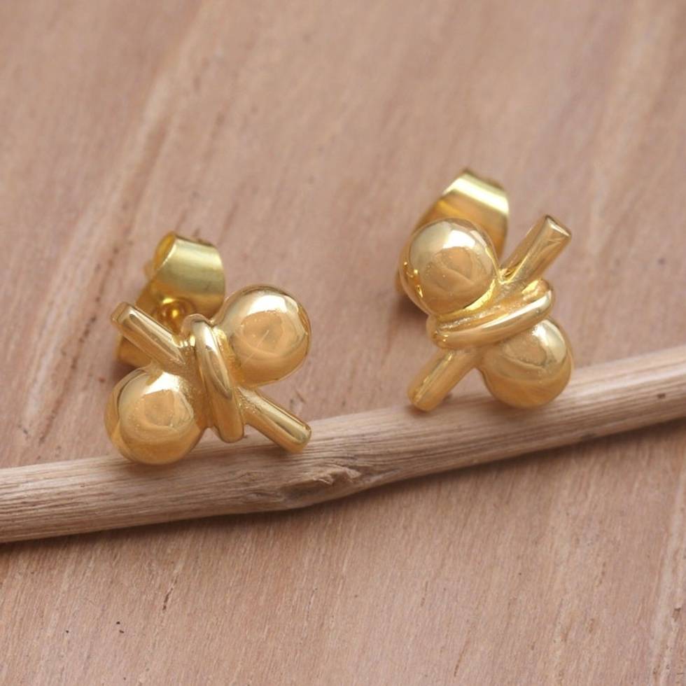 Stud Earrings in 18k Gold Plate 'Golden Ribbon' Item ID: 2671748465