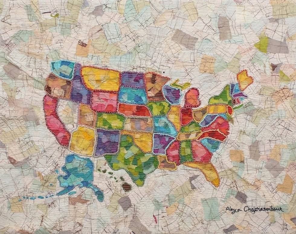 Stunning Batik Patchwork Wall Hanging of USA Map 'Map of the USA' Item ID: 2671800533
