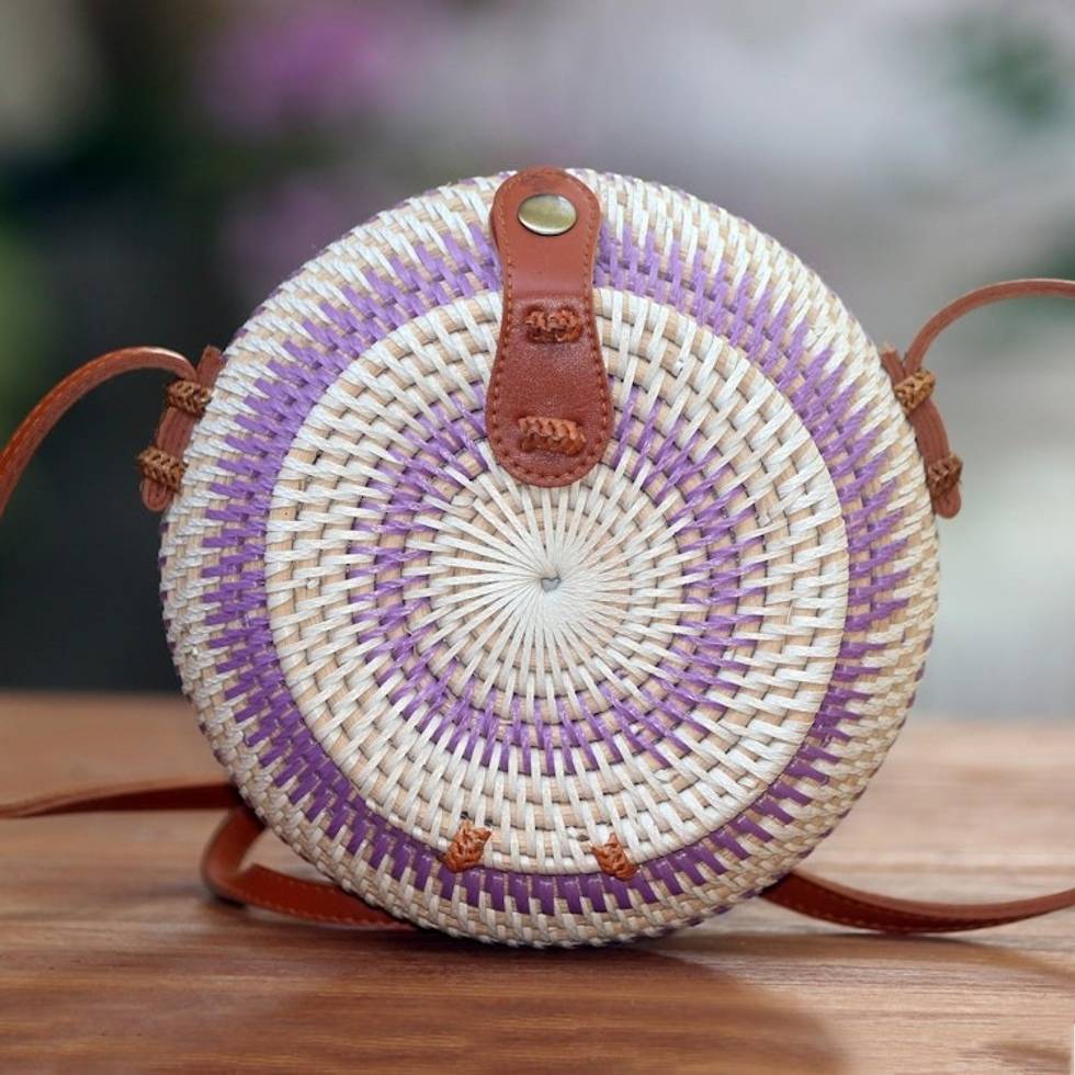 Stylish Purple and White Round Woven Shoulder Bag 'Purple Target' Item ID: 2671744999