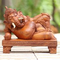 Suar and Crocodile Wood Ganesha Sculpture 'Reclining Ganesha' Item ID: 2669889451