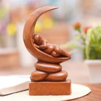 Suar Wood Figure Sculpture with Moon Motif 'Dream Baby' Item ID: 2669891527