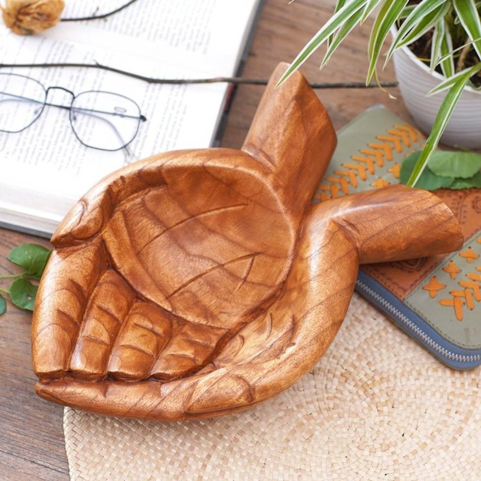 Suar Wood Hand Catchall Crafted in Indonesia 'Giving Alms' Item ID: 2669891515
