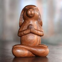 Suar Wood Praying Beagle Sculpture from Bali 'Praying Beagle in Brown' Item ID: 2671736536