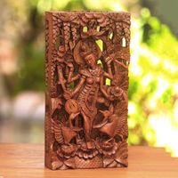 Suar Wood Relief Panel of Hindu God Saraswati from Indonesia 'Sarasvati' Item ID: 2671736607