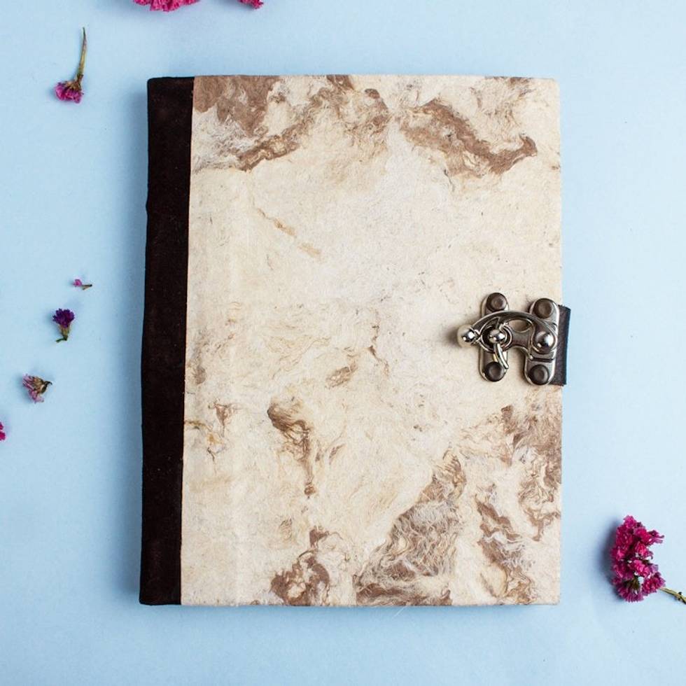 Suede Accented Recycled Amate Paper Journal in Beige 'Marbled Veins' Item ID: 2671808166
