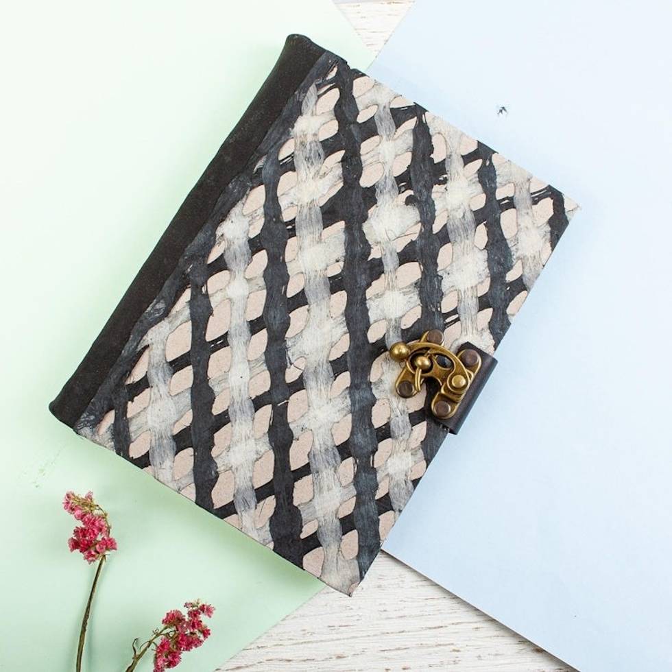 Suede-Bound Amate Paper Journal from Mexico 'Black and White' Item ID: 2671808332