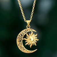 Sun and Crescent Moon 22k Gold-Plated Pendant Necklace 'Sacred Duo' Item ID: 2671625473