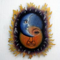 This is one of the most unusual Suns I've ever come across - you know you've seen this Sunset before at the Ocean - the Eyes are intriguing - love so much, also purchased for Sister