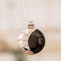 Sun and Moon-Themed Black and Green Jade Reversible Necklace 'Maya Eclipse' Item ID: 2671768984