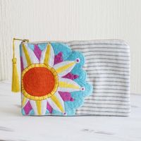 Sun Motif Embroidered Cotton Denim Cosmetic Bag 'Sky Blue Sunshine' Item ID: 2671776858