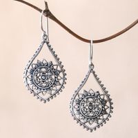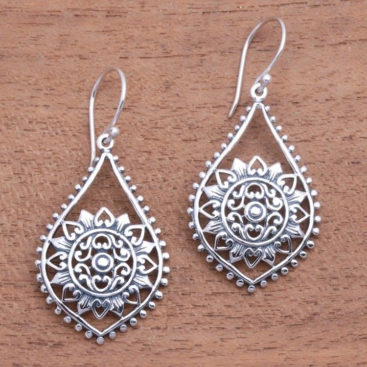 Sun Pattern Sterling Silver Dangle Earrings from Bali 'Jagaraga Sun' Item ID: 2671820742