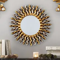 Sun-Themed Antique Gilded Bronze Aluminum Wood Wall Mirror 'Setting Sun' Item ID: 2671820062