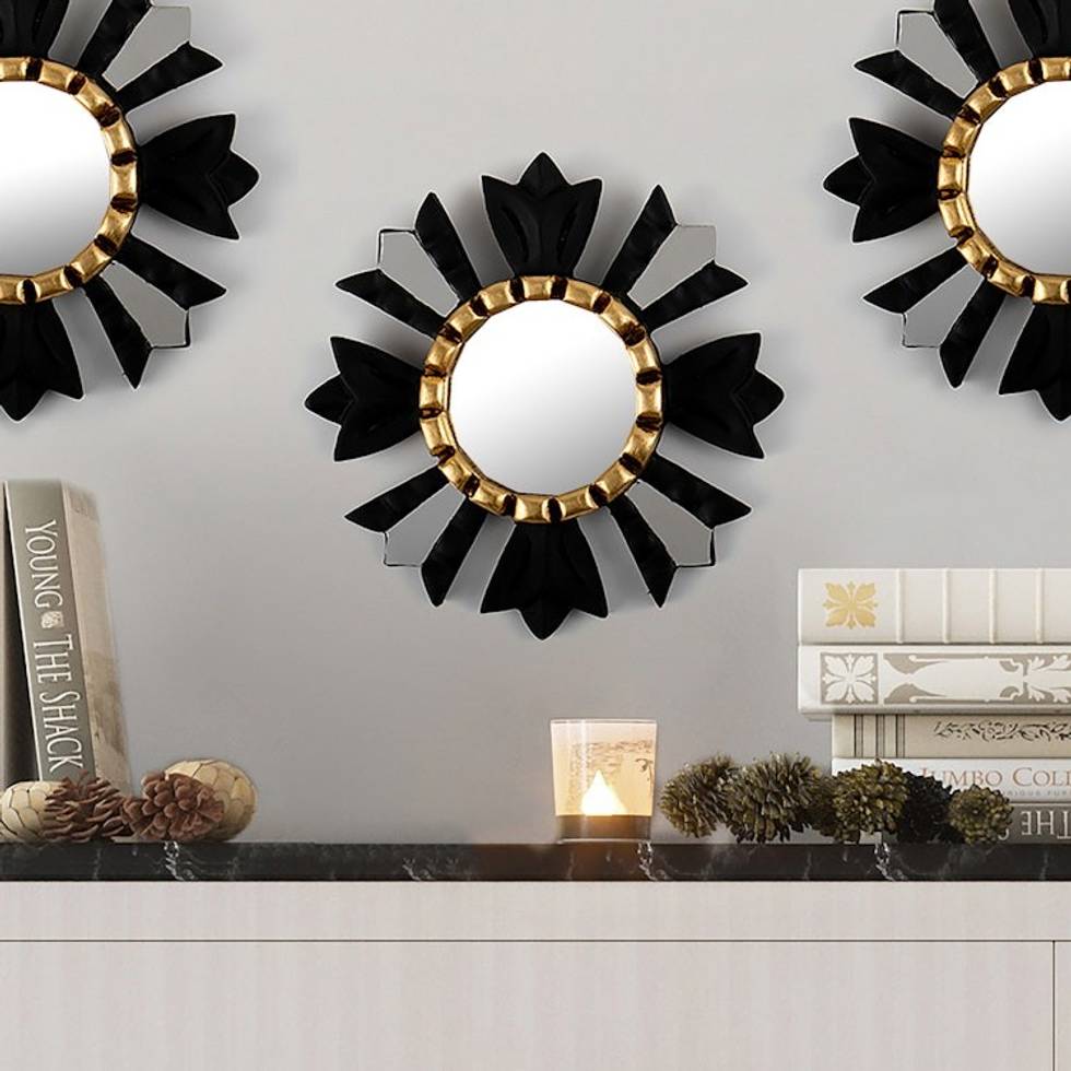 Sun-Themed Black Bronze Gilded Wood Wall Accent Mirror 'Wisdom Beams' Item ID: 2671697751