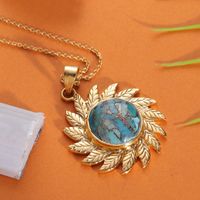 Sun-Themed Leafy Reconstituted Turquoise Pendant Necklace 'Arcadian Sun' Item ID: 2671625568