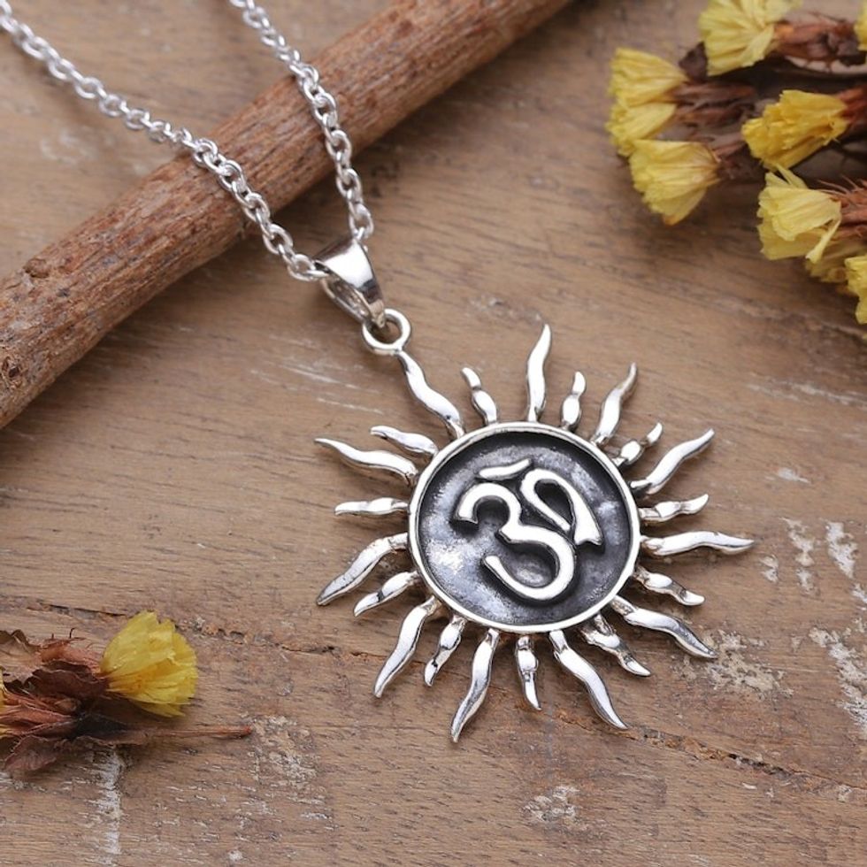 Sun-Themed Om Sterling Silver Pendant Necklace from India 'Sun's Om' Item ID: 2671782061
