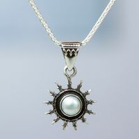 Sun-Themed Sterling Silver and White Pearl Pendant Necklace 'Pearly Dawn' Item ID: 2671807608