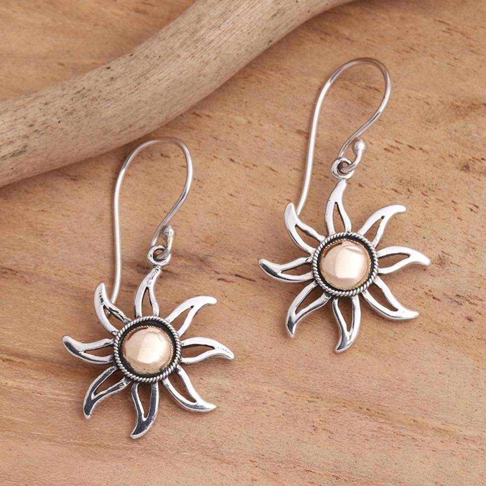 Sunburst Sterling Silver Earrings with Gold Plated Accent 'Celuk Sun' Item ID: 2669919805