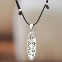 "Crafted to appeal to men with a taste for distinctive accessories, this exceptional necklace boasts a unique pendant shaped like a surfboard and adorned with traditional Balinese motifs. Artisans Maria and Gennadii's remarkable design features a striking combination finish and a practical adjustable black cord with a sliding knot closure, ensuring effortless wearability and style versatility."