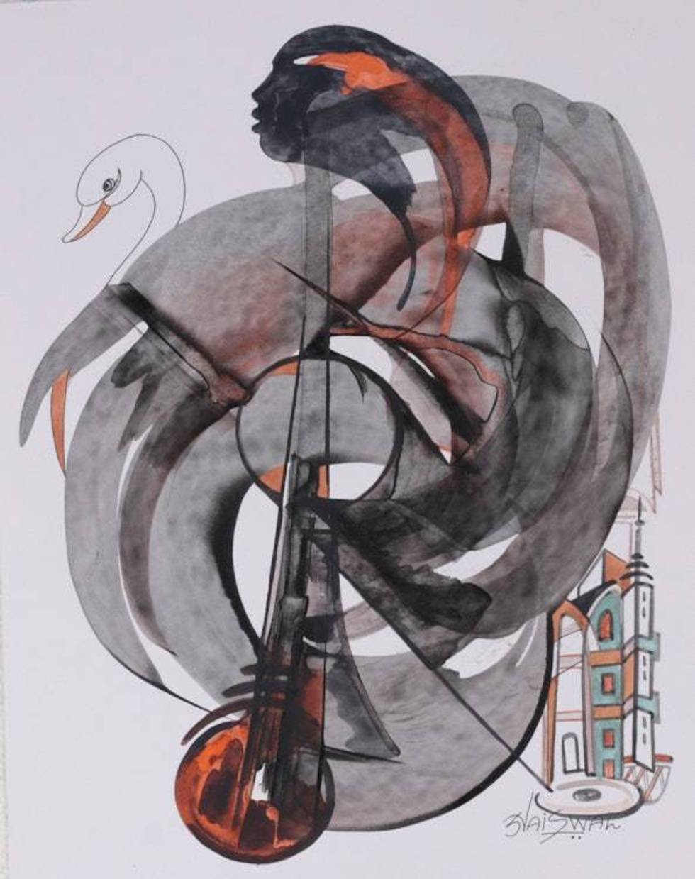 Swan People and Musical Instrument-Themed Acrylic Painting 'Echoes of Serenity' Item ID: 2676664798