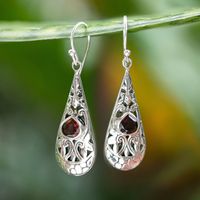 Swirl Armadillo Openwork Silver Garnet Dangle Earrings 'Crimson Blooming' Item ID: 2671765547