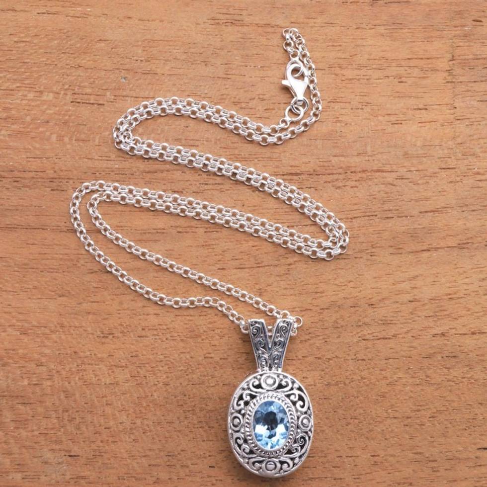 Swirl Pattern Blue Topaz Pendant Necklace from Bali 'Angel Eye' Item ID: 2669921493