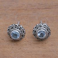 Swirl Pattern Blue Topaz Stud Earrings from Bali 'God Eye' Item ID: 2671736570