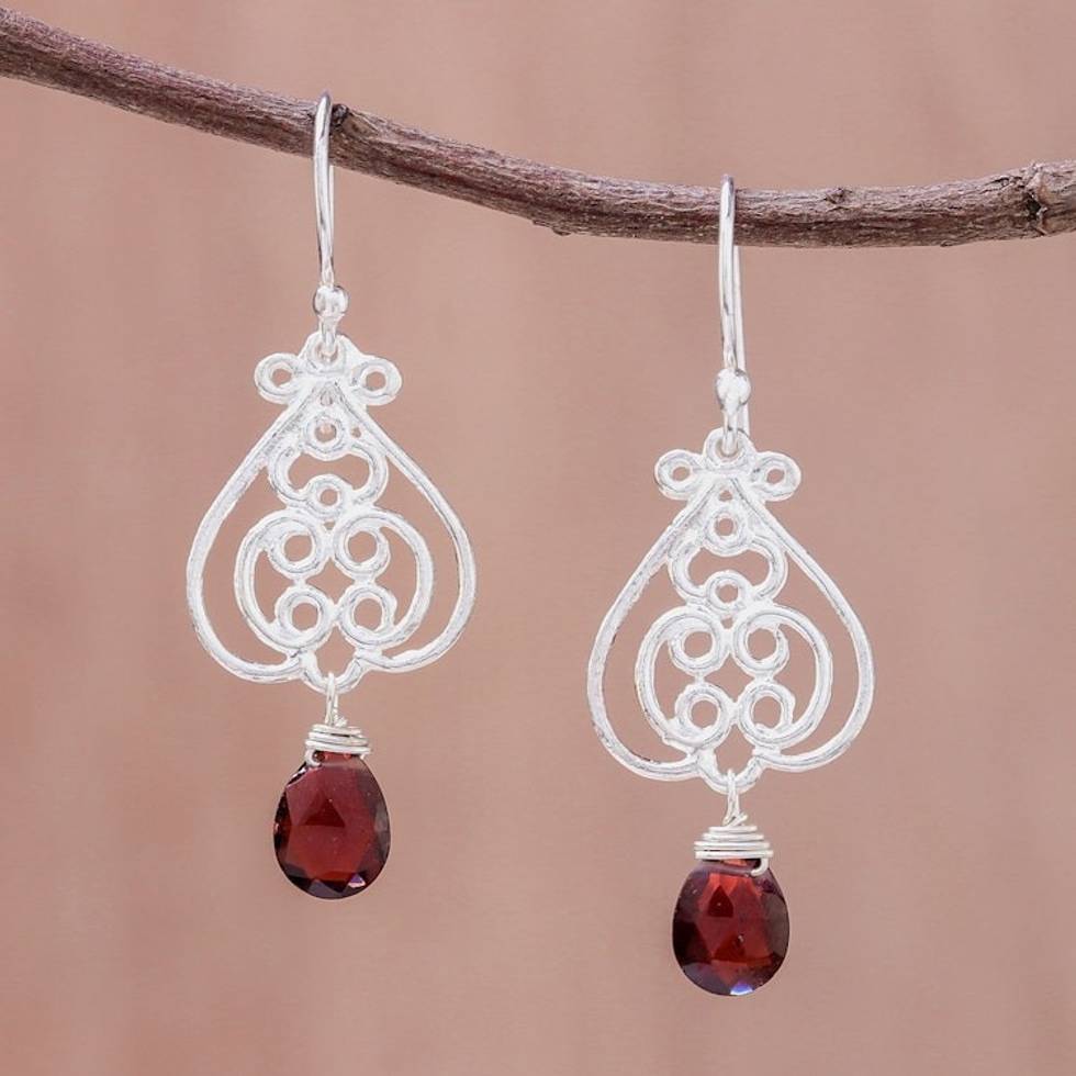 Swirl Pattern Garnet Dangle Earrings Crafted in Thailand 'Swirling Beauty' Item ID: 2671798423